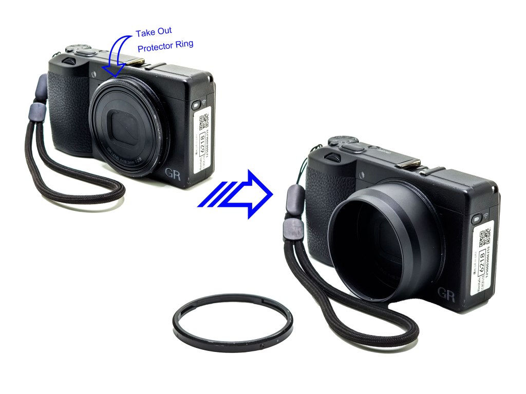 Remove the protector ring of the camera before install this adaptor onto the camera.