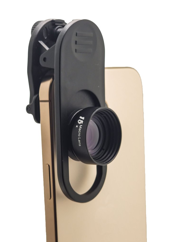 Consider the Macro Photography will need a Fill light Illuminate from the side or Back, Our included Fill Light on the Pro Lens Kit which can stand alone on the table by the special design of the Clip.